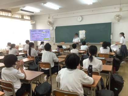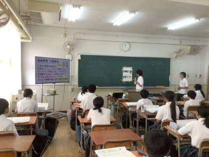1年の理科の授業で、夏休みの自由研究を一人一人、みんなも前で発表しました。1人1分程度ですが、緊張しつつもしっかりと発表することができました。