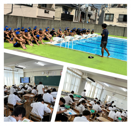 授業の様子(1年水泳 2年理科 3年美術)