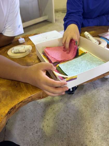 コチラでは美濃和紙を使ってランプシェード作りを始めました。