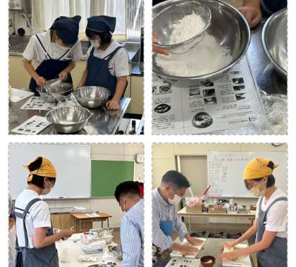 家庭科の村上先生を特別講師に迎え、こね方などを教わりました。