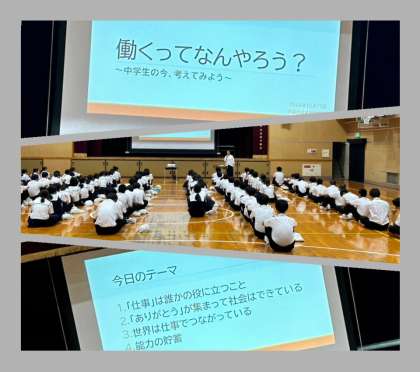 なぜ働くのか?何のために働くのか? 中学生の今、自分の将来を考え目を向けていくうえでとても貴重なお話でした。