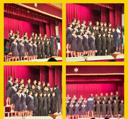 1組『明日へ』2組『COSMOS』3組『大切なもの』4組『花は咲く』各クラスの素晴らしい歌声が会場を包んでいます。