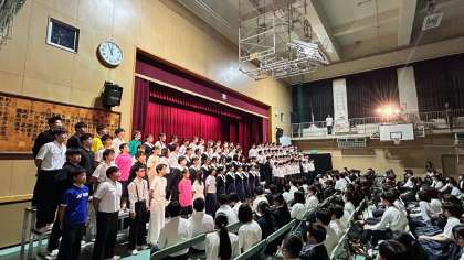 舞台発表午前の部を締めくくる3年生全体合唱「未来」です。