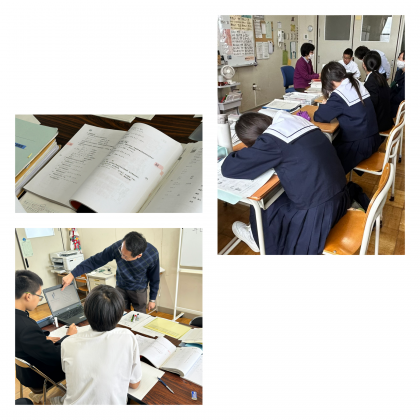 日本語教室の授業の様子です。「むずかしい…」という声もきこえてきますが、みんな一生懸命勉強しています。違う学校の友達どうしですが仲良く楽しく会話している様子も見られます。