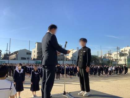 校長先生のお話の後は、3年生の「税に関する作文」の表彰や、バレーボールの大阪市南地区選抜選手の紹介がありました。