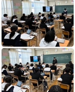 聞く側の生徒もしっかりと聞きながら挙手や拍手で発表者に協力しています。