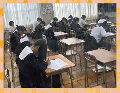 今日はテスト2日目です。数学、国語、技家(2年)、音楽(3年)を受験しています。