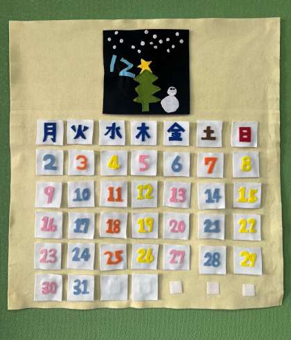 12月に入りました。家庭科部で作成したフェルトカレンダーもクリスマスと雪だるまになりました。