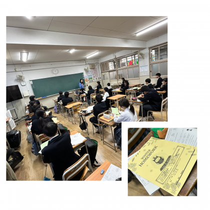 英語の授業では一足早く黄色い表紙のクリスマスプレゼント(?)が配付されていました。