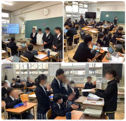 あるクラスでは、グループごとに「伝統文化を広げるための企画書」をプレゼンテーションソフトで作成し、みんなの前で発表しました。短い時間でインターネットでいろいろと調べて、スライドにまとめ、発表もしっかり行っているのに先生も感心しました。