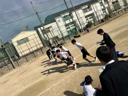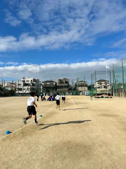 今日で2学期最後の授業です。1年生の持久走の様子です。