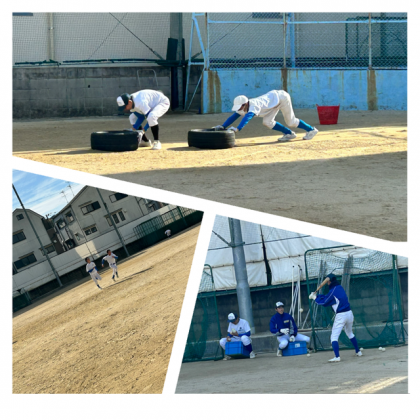 野球は冬場はオフシーズンなので、走りこみやトレーニング中心の練習です。厳しくしんどい練習で体を鍛えるとともに心も鍛えられると思います。