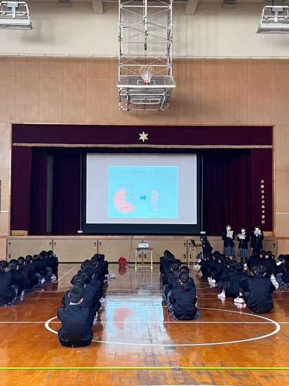 学年集会で保健委員が、睡眠について発表しました。