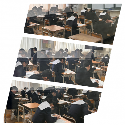3年生は今日から3日間「卒業テスト」を受けています。いわゆる学年末テストですが、1年間の総まとめのテストであるとともに、中学校生活最後の校内テストでもあります。