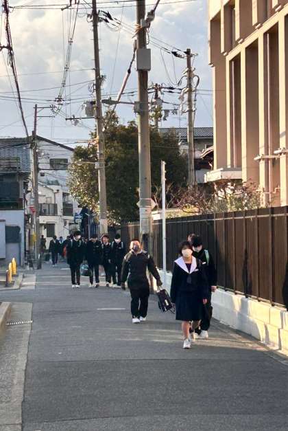 朝の登校の様子です。今週はとても寒い日が続いて今日も寒い朝でした。