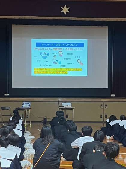 今日は、学校薬剤師の向井先生にお越しいただき、薬物乱用防止教室を開催しました。薬物と依存について、薬物の種類、薬物が体に与える影響、オーバードーズについてなど、たくさんのお話を聞きました。