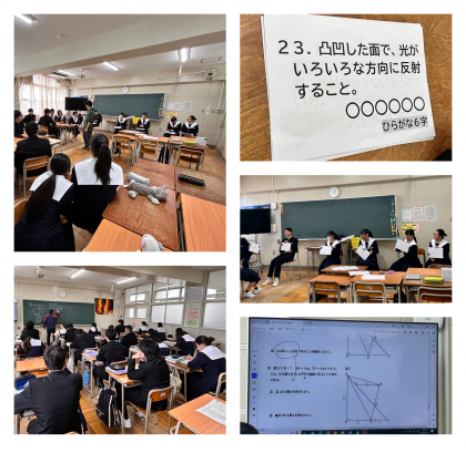 理科では、班対抗で理科に関連するクイズ大会が行われ、バラエティー番組「○○リーグ」みたいに問題に対し5.6人が1人1文字で答えを完成させる形式で、とても盛り上がっていました。