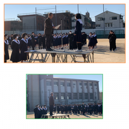 『最多読書賞』を受賞した代表生徒が、臣永区長より表彰を受けました。