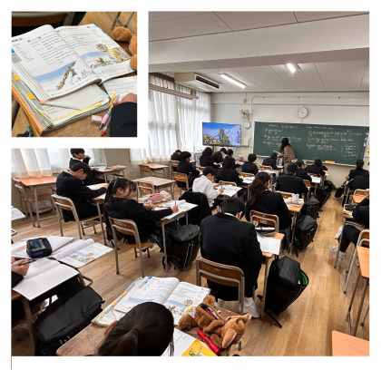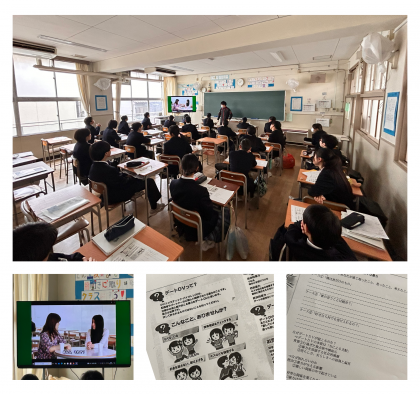 家庭科、英語の様子です。家庭科ではデートDVについて映像を見ながら学習しています。お互いを大切にすることが大事ですね。