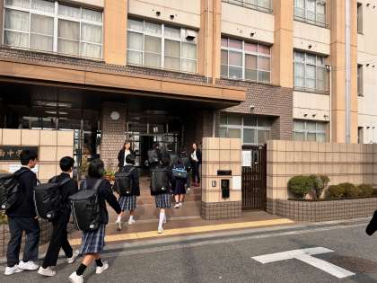 暖かくて、とてもいい天気の中、元気に登校しています。
