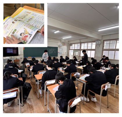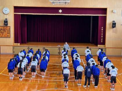 1年生家庭科、3年生体育の様子です。体育ではクラスが変わったので新しい整列・挨拶の隊形を確認しています。
