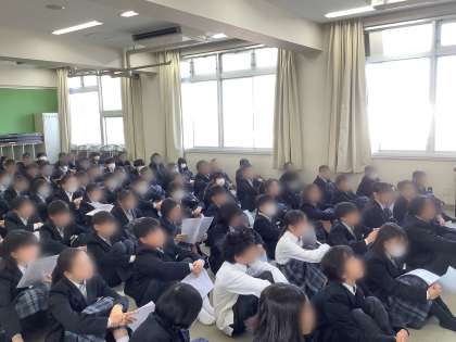 明日は、定例の学年集会を体育館で行います。早めの登校を心がけましょう。