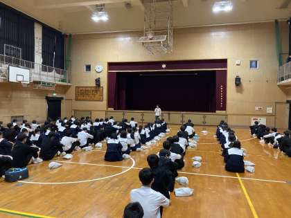 先生からはチャレンジすることの大切さのお話と体育大会の団長についてのお話がありました。