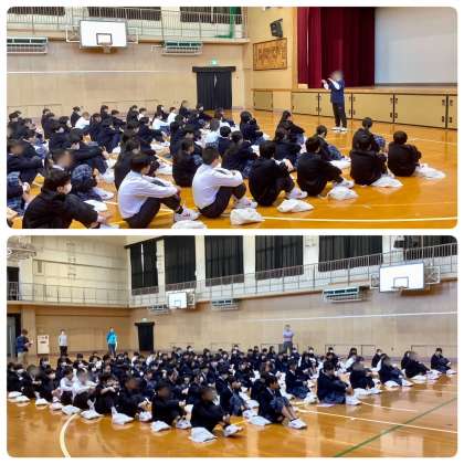 先生からは「月曜日の道徳の授業で『いじめ』について扱いましたが、みなさん正しい意見を持っているなあと感じました。さらに、その正しいことを正しいと堂々と言え、できていない人にきちんと教えてあげてほしい。みんなで成長し、安心・安全な学校の雰囲気づくりをしてほしい」というお話がありました。