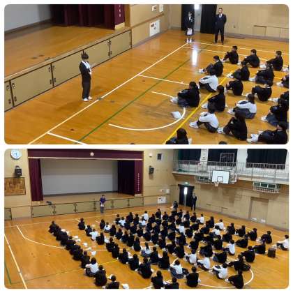 今日の学年集会から、学級委員長によるスピーチが始まりました。
