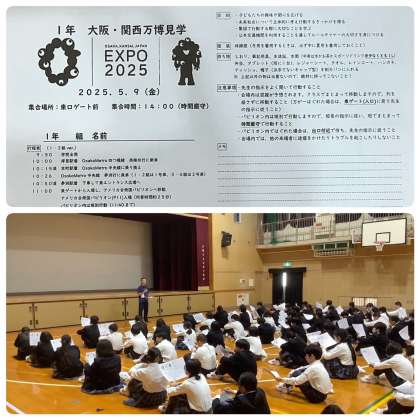 5月8日(木)6限、1年生は明日からの大阪・関西万博見学の前日指導がありました。