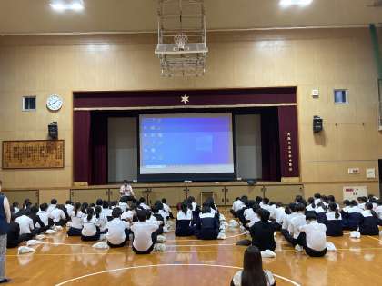 修学旅行の夜のレクリエーション活動の説明を体育館で行いました。