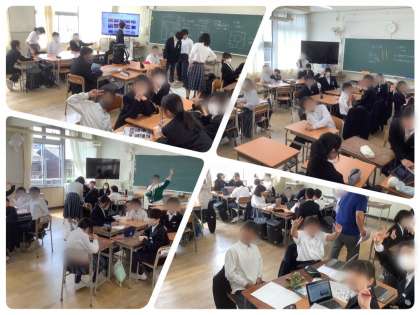 5月12日(月)5限、1年生は先週に行ってきた大阪・関西万博についての壁新聞づくりに取り掛かりました。