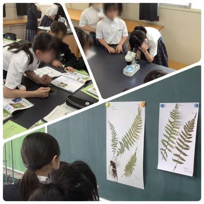 1年生の理科の授業で、シダ植物とコケ植物を観察し、その特徴や分類の仕方について学びました。