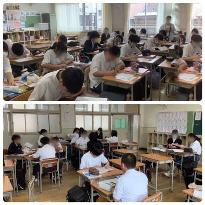 5月21日(水)6限の1年生の授業は、テスト前学習会でした。希望した教科に分かれて、明日に向けてテスト勉強を行いました。教科によっては、グループに分かれて机を合わせて、問題を出し合ったりしていました。