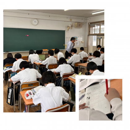 1年生の英語、数学、理科の様子です。学期初めより授業内容が難しくなってきていると思いますが、先生の説明をよく聞く。ノートを丁寧に書く。忘れ物をしない。などに気を付けて日々の授業をしっかりとがんばっていきましょう。