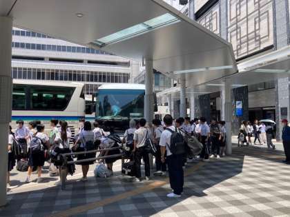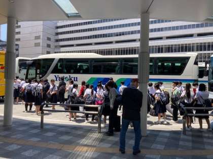 これからバスに乗って佐賀県虹の松原に向かいます。まもなく出発です。
