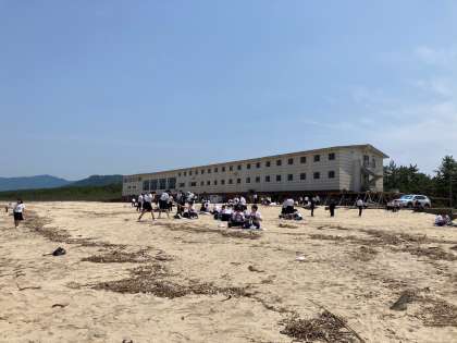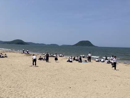 海辺で潮風を感じながら、みんなで楽しく昼ごはんを食べました。