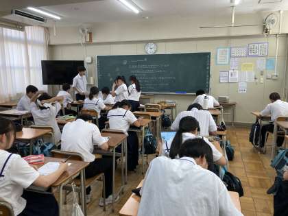 民泊での思い出の話で盛り上がりながら、一生懸命書いていました。