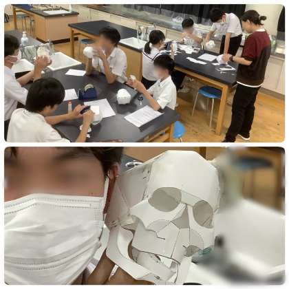 6月5日(木)、10日(火)の2回にかけて、理科部ではヒトの頭骨のペーパークラフトを作成しました。