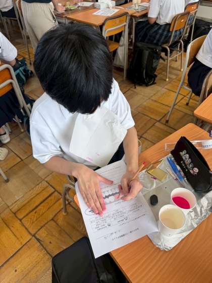 生徒の感想には「前歯や上の歯がよごれていたので、これからはそこを重点的にみがこうと思います」「歯みがきは毎日やることに意味があると思います」「今日歯をみがく時、えんぴつの持ち方で持ってみます」などがあり、自分の口の中の健康について見直すきっかけになったようです。