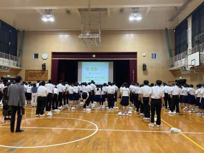 授業では、税金の歴史について、江戸時代の年貢からアメリカ独立のきっかけとなったボストン茶会事件まで学びました。税金クイズでは「1人の生徒が1か月公立中学校に通うために使われる税金は約93,000円」と知り、驚きの声が上がりました。模擬選挙では、教育・福祉・環境などへの税金の使い道を自分たちで選び、投票を通じて政治参加の大切さを体験しました。