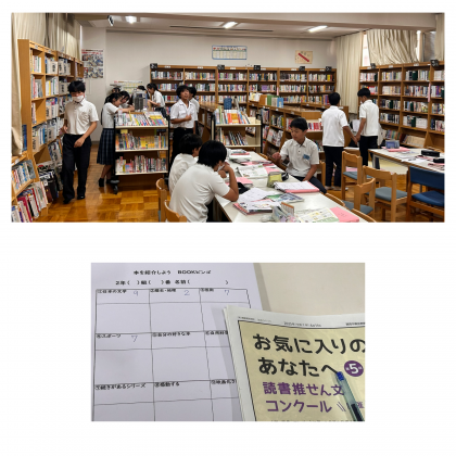 2年生の国語では、図書館で夏休みに読む本を選んでいます。テーマごとに本を選んでビンゴ完成をめざします!