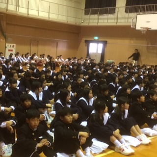 成南中学校には14の部活動があります。中学校に入学して、1年生がとても楽しみにしている部活動紹介です。先輩たちも、どきどきしながらかっこ良いところを見てもらいたいとこの日に臨みました。実演もまじえてわかりやすく伝えてくれたので、興味をもって最後まで目を輝かせて見ていた1年生です。