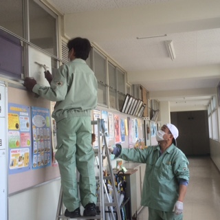 管理作業員の方々が、職員室前の廊下の窓を美しくしてくれています。ほこりまみれで暗かった窓が、透明になって職員室が明るくなりました。気持ちも元気になってきます。学校を美しく、安全な場にしていただいている管理作業員の方に感謝いたします。各教室も美しくして、学習しやすい環境にしていきましょうね。