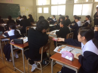 4時間目の理科の授業です。物質の性質の単元です。教科書の「カルメ焼きをつくってみよう」に「作りたい〜」と声をあげる2年生です。先生が、お風呂のバブや重曹を家から持ってきて、子どもたちに見せると「先生は家で一人ですか?」など、興味は先生の私生活に集まる子どもたちです。新しくこられた教科担当の先生と暖かな雰囲気で落ち着いて授業を受けているのを見ると、ほのぼのしますね。