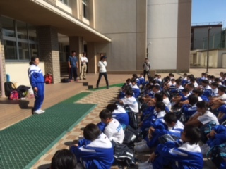 保護者・PTAの方をはじめ、成南中学校の先生や先輩たちが出迎えてくれました。「お帰りなさーい」。とっても嬉しいですねえ。