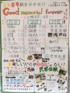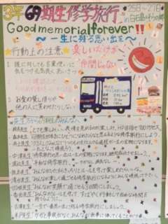 修学旅行委員のメンバーが壁に行程やメッセージを書いて、修学旅行の気運を高めてくれていました。