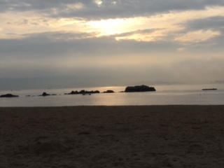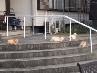 「わあ めっちゃきれい」夕日を見ながら美味しいごはんを食べましょう。ネコちゃんもノンビリと。