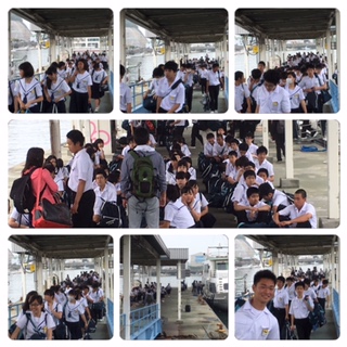 1時間のフェリーも終わりました。今からラフティングの場所へと移動します。誰も船酔いなかったようです。元気です。