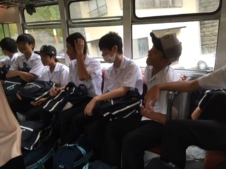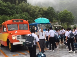 祖谷谷の奥に向かう民家組はとってもかわいいマイクロバスに乗り換えました。どんどん山奥に入っていきます。